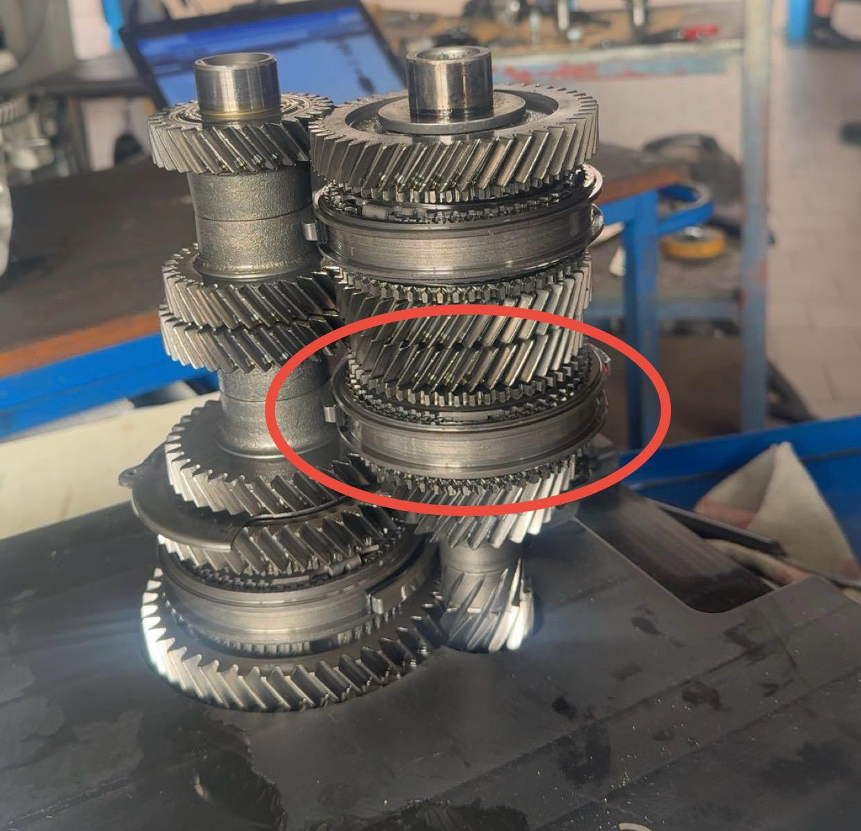 Repairing this fault can be a complex procedure. First, the gearbox must be removed from the vehicle. Then, you need to carefully dismantle the entire gearbox, including the input shaft. The photo attached below, with the location marked in red, shows where the 3rd and 4th gear sets sit on this shaft.